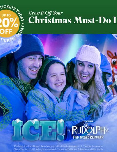 Save up to 20% on holiday fun for everyone at ICE! Featuring Rudolph the Red-Nosed Reindeer™.
