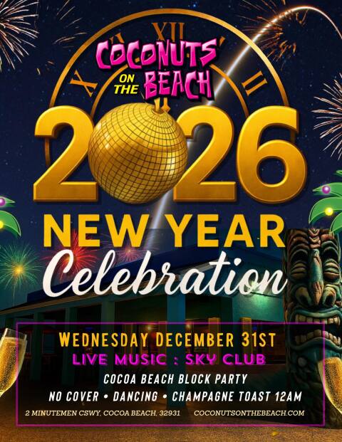New Year’s Eve at the beach just hits different Join us at Coconuts On The Beach as we celebrate NYE 2026 with unbeatable vibes, live music, and front-row energy to all the Cocoa Beach festivities.