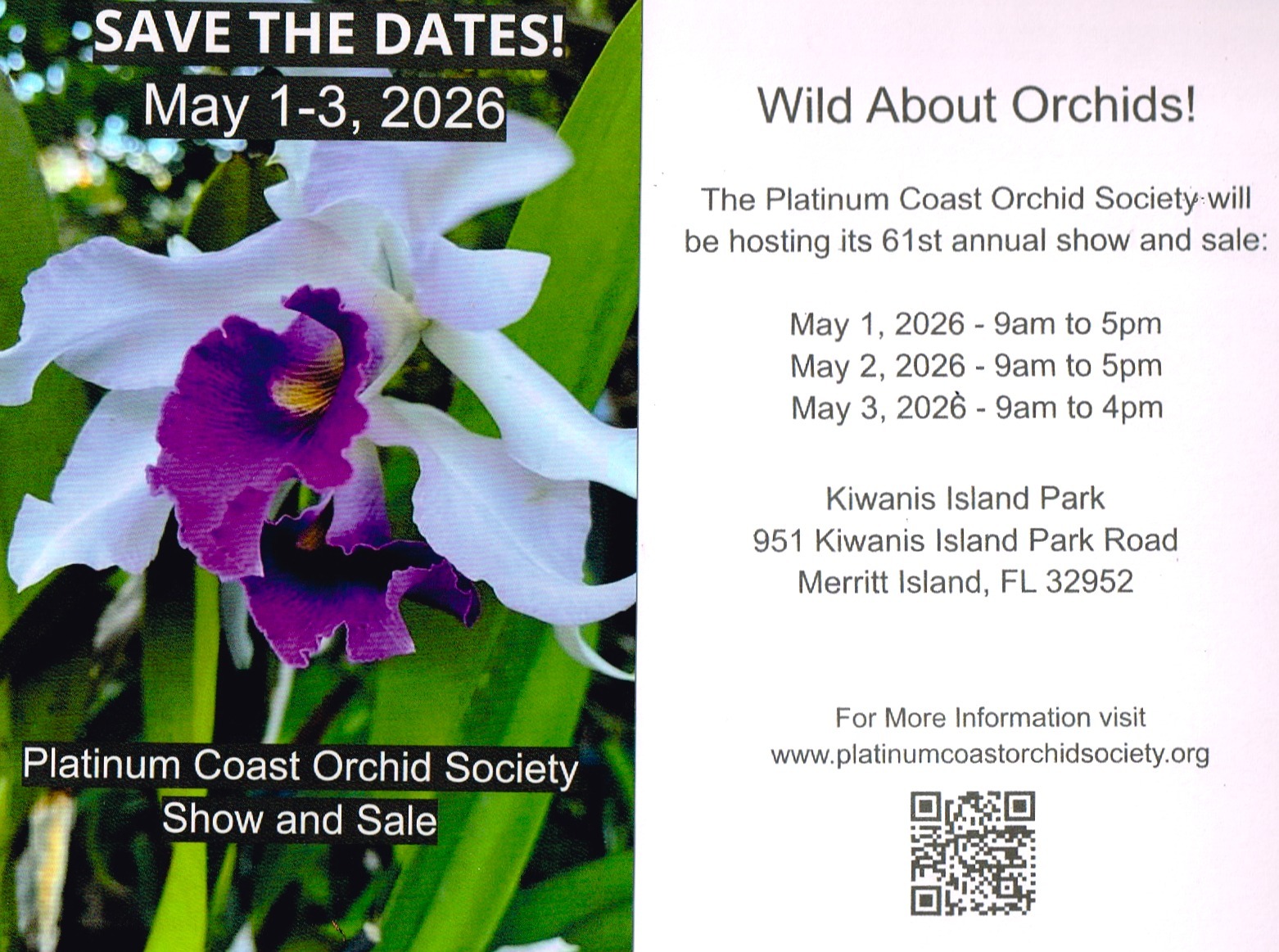 Join us for the 61st Annual orchid show and sale at Kiwanis Park on Merritt Island! May 1-3rd, 2026